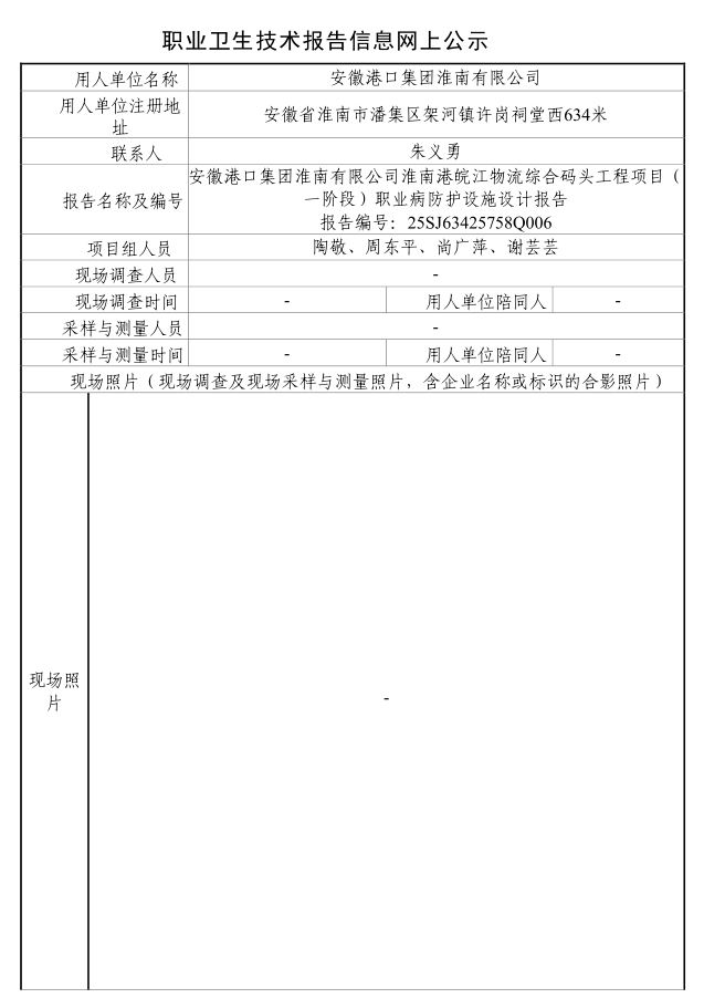 安徽港口集團淮南有限公司淮南港皖江物流綜合碼頭工程項目(一階段)設計 報告編號:25SJ63425758Q006